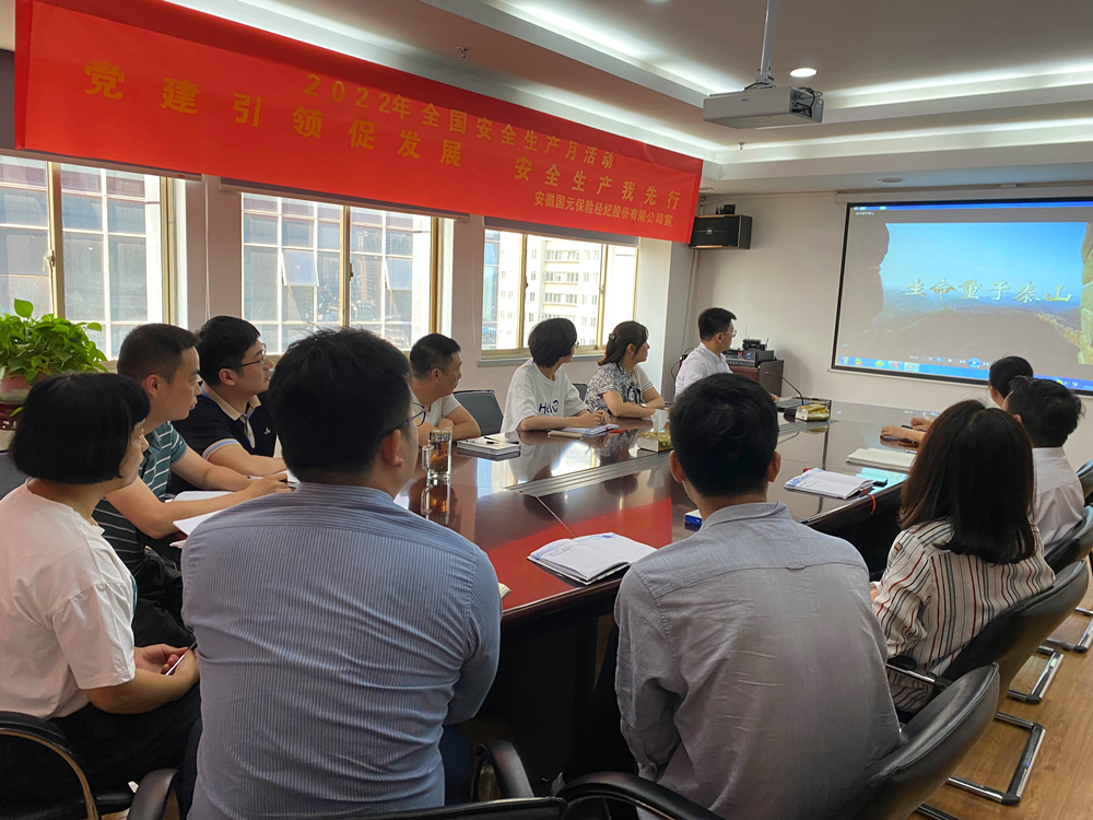 6月1日下午,國元保險(xiǎn)經(jīng)紀(jì)2022年安全生產(chǎn)月系列活動第一波正式拉開序幕!首先,公司全體員工共同深入學(xué)習(xí)了習(xí)近平總書記關(guān)于安全生產(chǎn)的重要論述,圍繞公司安全發(fā)展進(jìn)行交流和探討,為公司做好安全生產(chǎn)工作指明了方向、提供了遵循。接著,公司領(lǐng)導(dǎo)認(rèn)真組織學(xué)習(xí)安全生產(chǎn)十五條措施,深刻領(lǐng)會安全生產(chǎn)十五條措施的重要意義。安全生產(chǎn)十五條措施是針對當(dāng)前安全生產(chǎn)領(lǐng)域的新情況新問題新風(fēng)險(xiǎn)新隱患提出的,這些措施貫穿了習(xí)近平總書記關(guān)于安全生產(chǎn)的重要指示精神,對于公司強(qiáng)化安全生產(chǎn)責(zé)任落實(shí)、堅(jiān)決防范遏制重特大事故具有很強(qiáng)的針對性和指導(dǎo)性。最后,公司全員集中觀看了《生命重于泰山》電視專題片,通過深入學(xué)習(xí)直面風(fēng)險(xiǎn)、樹牢理念、強(qiáng)化責(zé)任、健全體系、狠抓落實(shí)五個(gè)主題片段,充分認(rèn)識到“安全生產(chǎn)無小事,防微杜漸是關(guān)鍵”,進(jìn)一步提升安全生產(chǎn)風(fēng)險(xiǎn)防范意識。